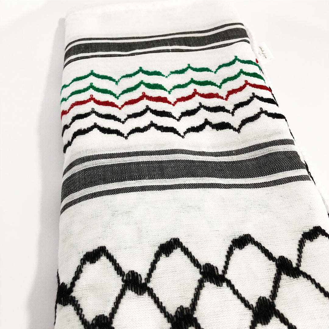 Woven with Passion in the Heart of Nablus: Each of our kufiyas begins its journey in the historic first textile factory in Nablus, Palestine. Crafted with care and an eye for quality, this piece isn't just a scarf; it's a symbol of our rich history and dedication to craftsmanship.