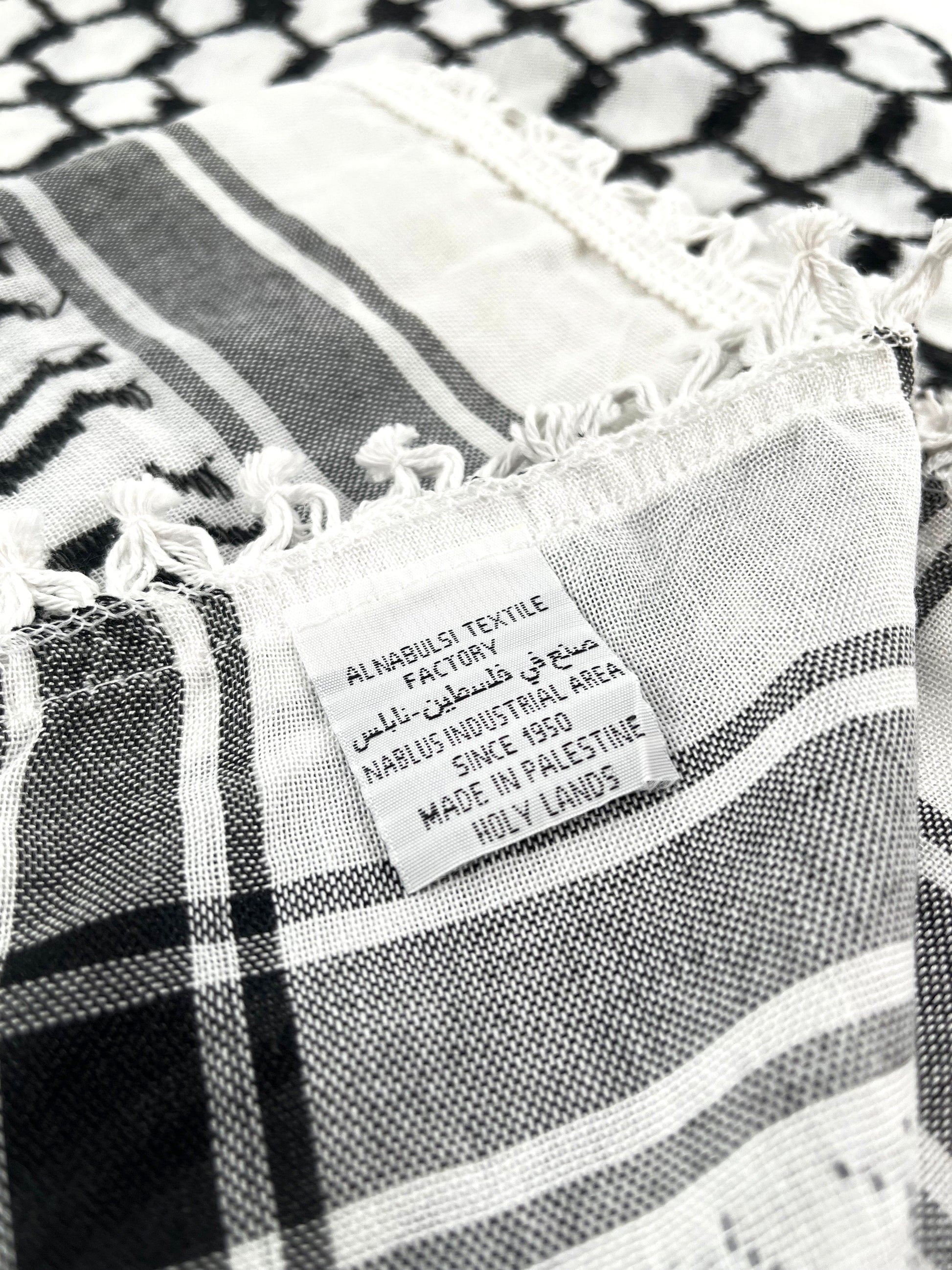 Woven with Passion in the Heart of Nablus: Each of our kufiyas begins its journey in the historic first textile factory in Nablus, Palestine. Crafted with care and an eye for quality, this piece isn't just a scarf; it's a symbol of our rich history and dedication to craftsmanship.